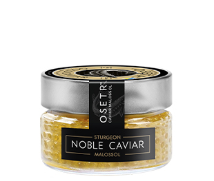 Это икра очень редкой стерляди-альбиноса, которая ценится своей эксклюзивностью.
